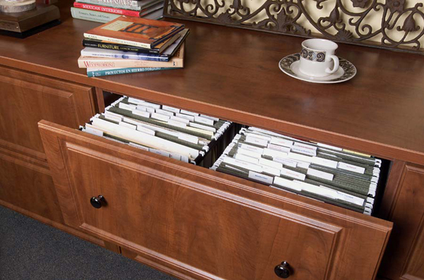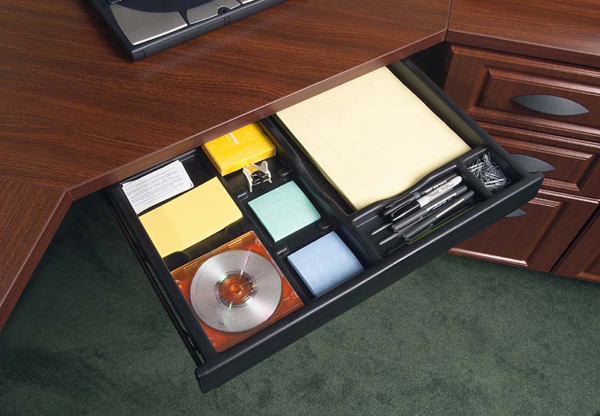 Add elegance and sophistication with beautiful office accessories and system components to organize the messiest of offices including: under mount keyboard and pencil trays, computer carts and custom design storage spaces.